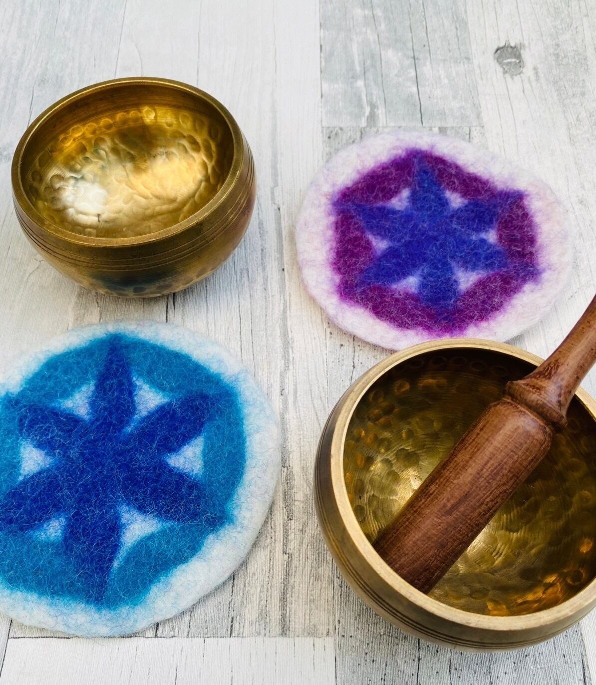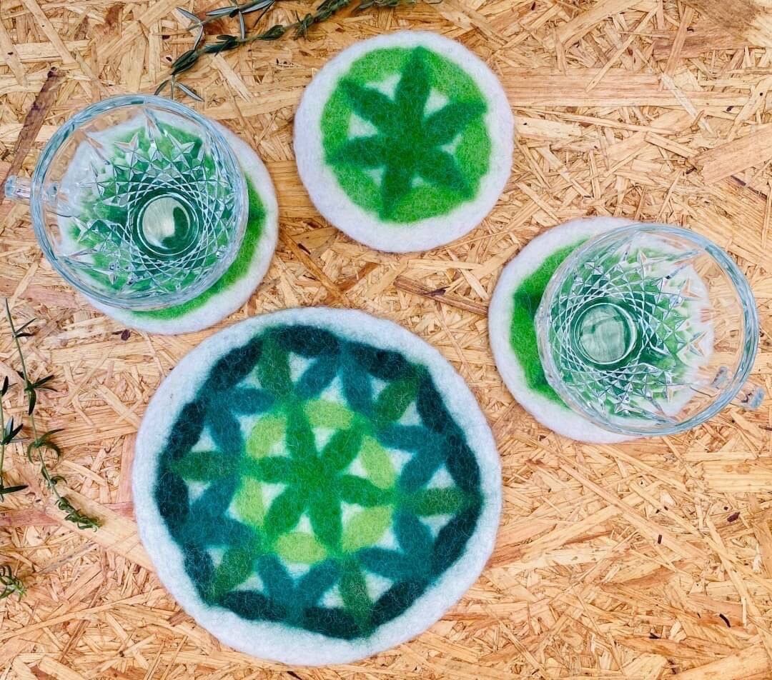 ふわふわウールを薄く敷き詰めて成形、羊毛の縮絨効果により、擦れやこすりによる加工を施して作り上げたフェルトマットです。形成に1ヶ月、乾燥だけでも2〜3週間の時間をかけてのネパールの女性のハンドメイドによる製作過程。ひとつひとつをゆっくり丁寧に仕上げて下さいました。