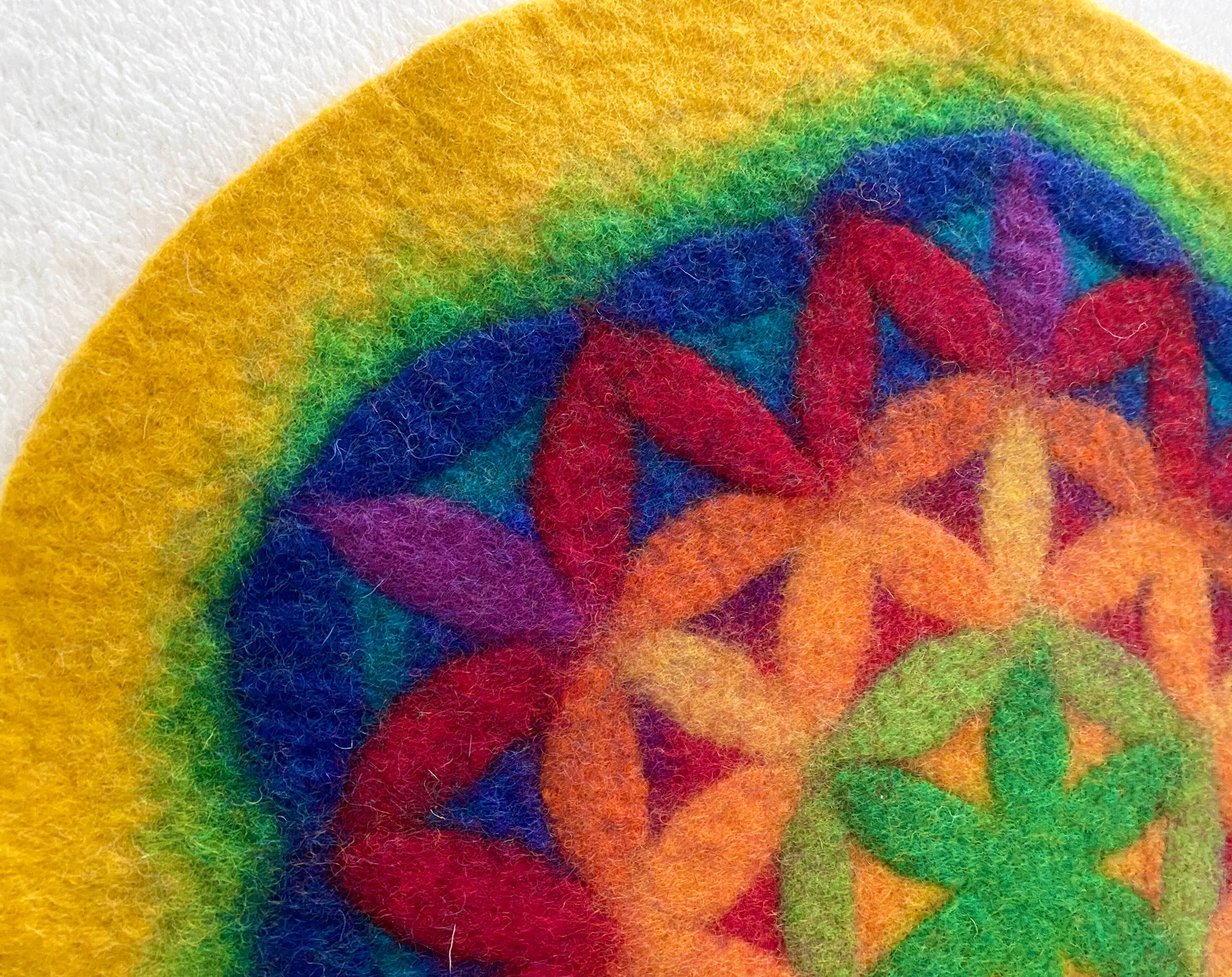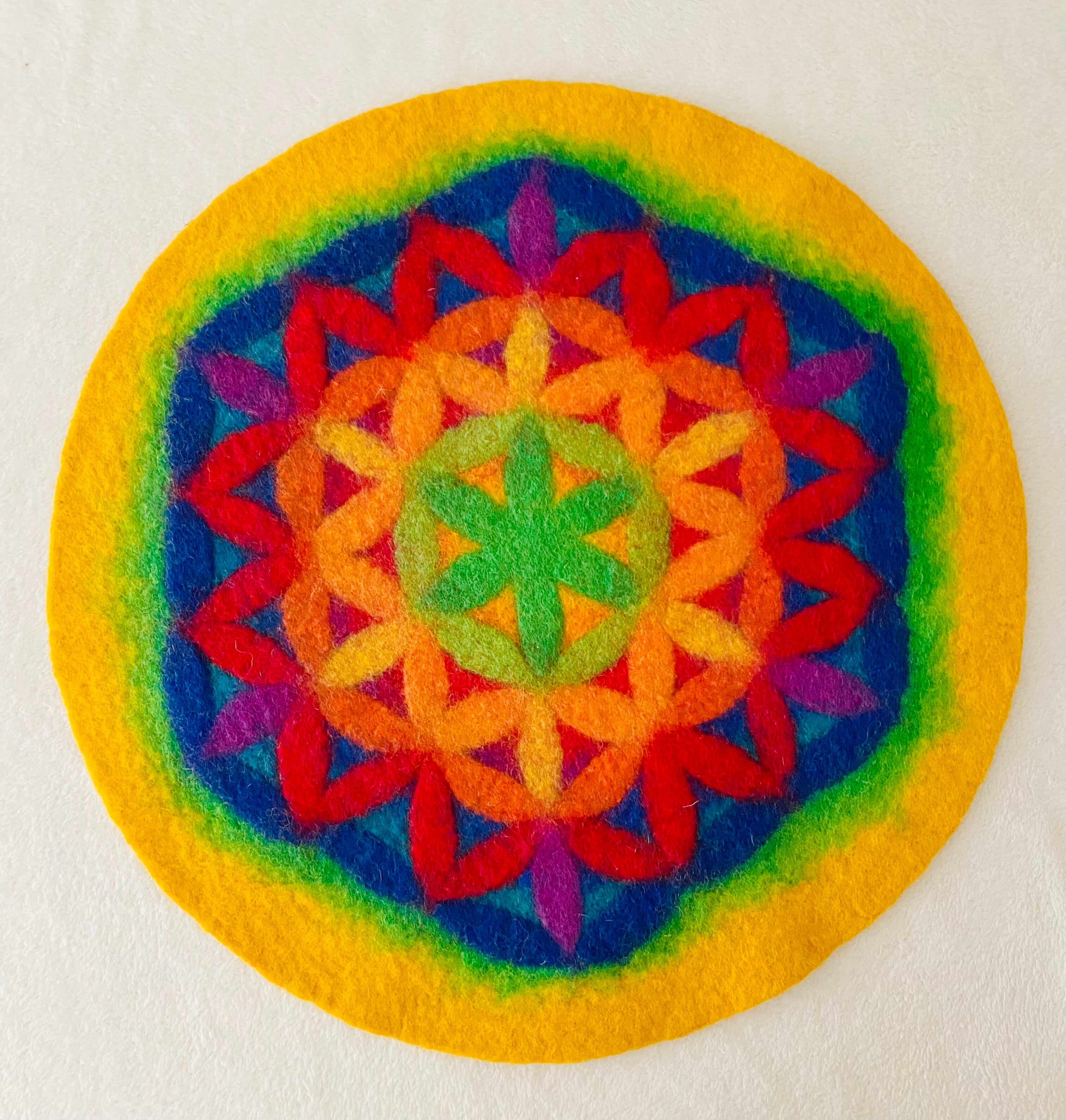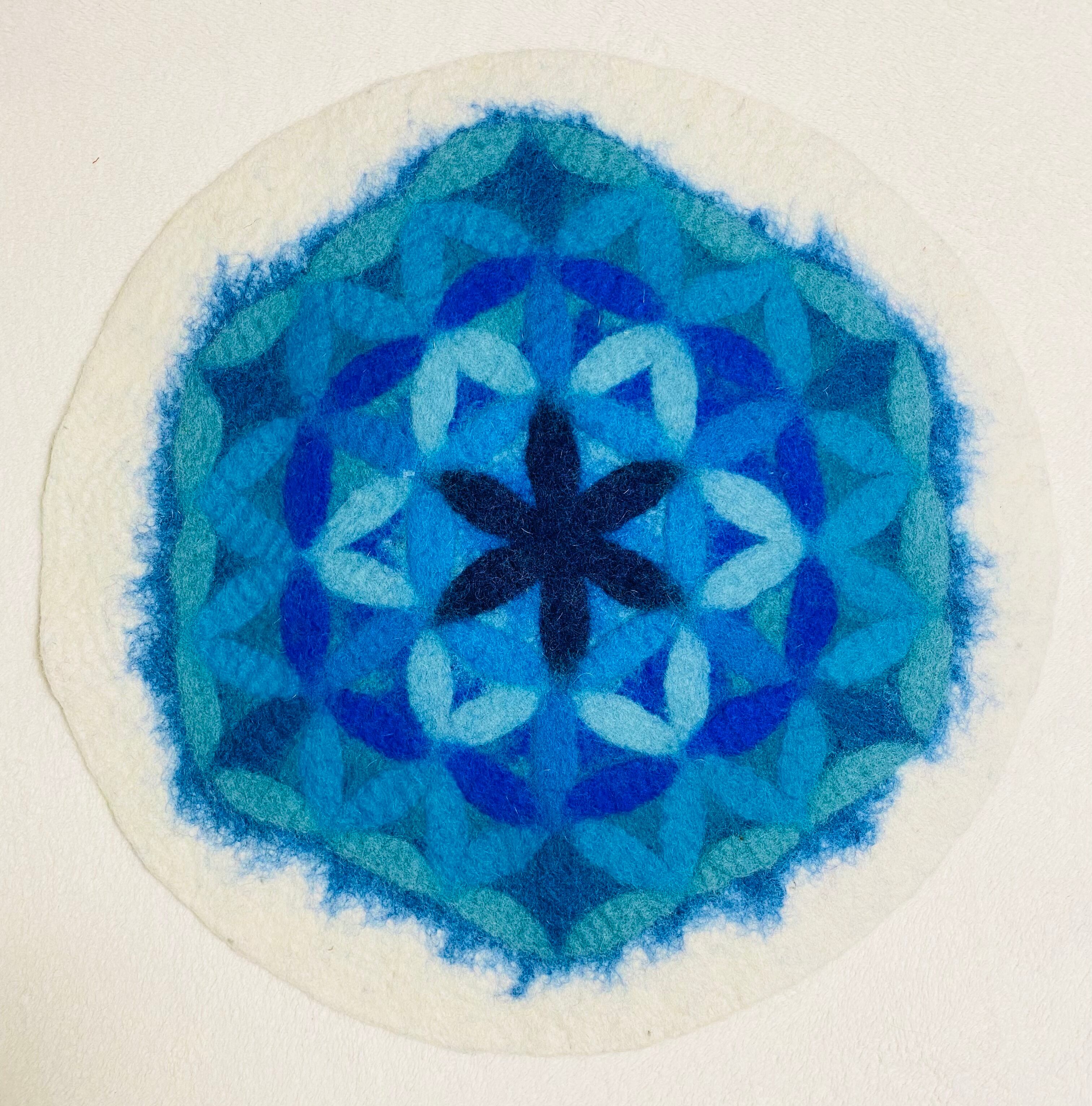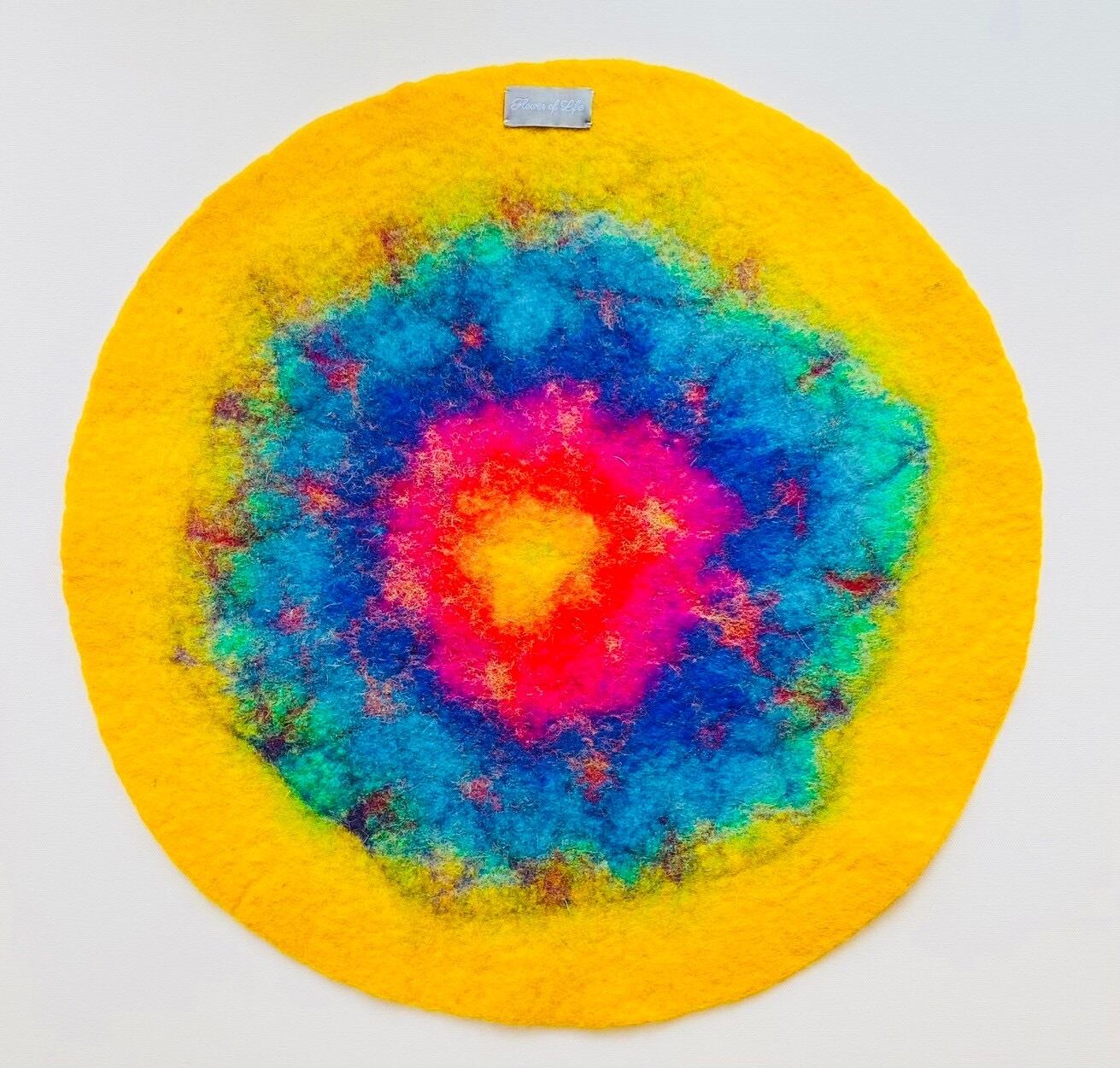 生命の根源や宇宙の森羅万象を表す形として知られる、神聖幾何学模様の一つ「フラワーオブライフ」のタペストリーマット。
