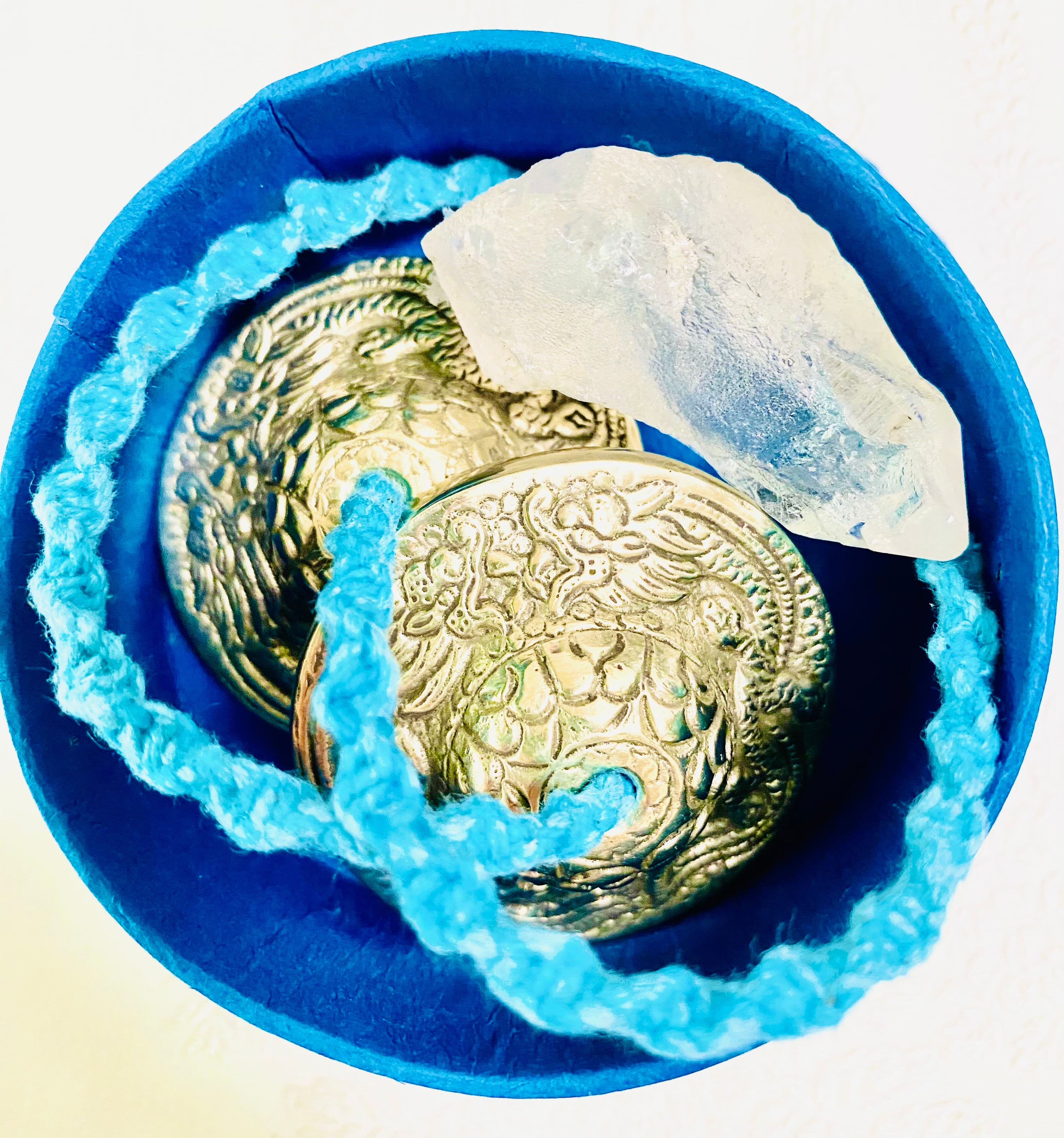 お箱、ティンシャ、ブルーコットン取手