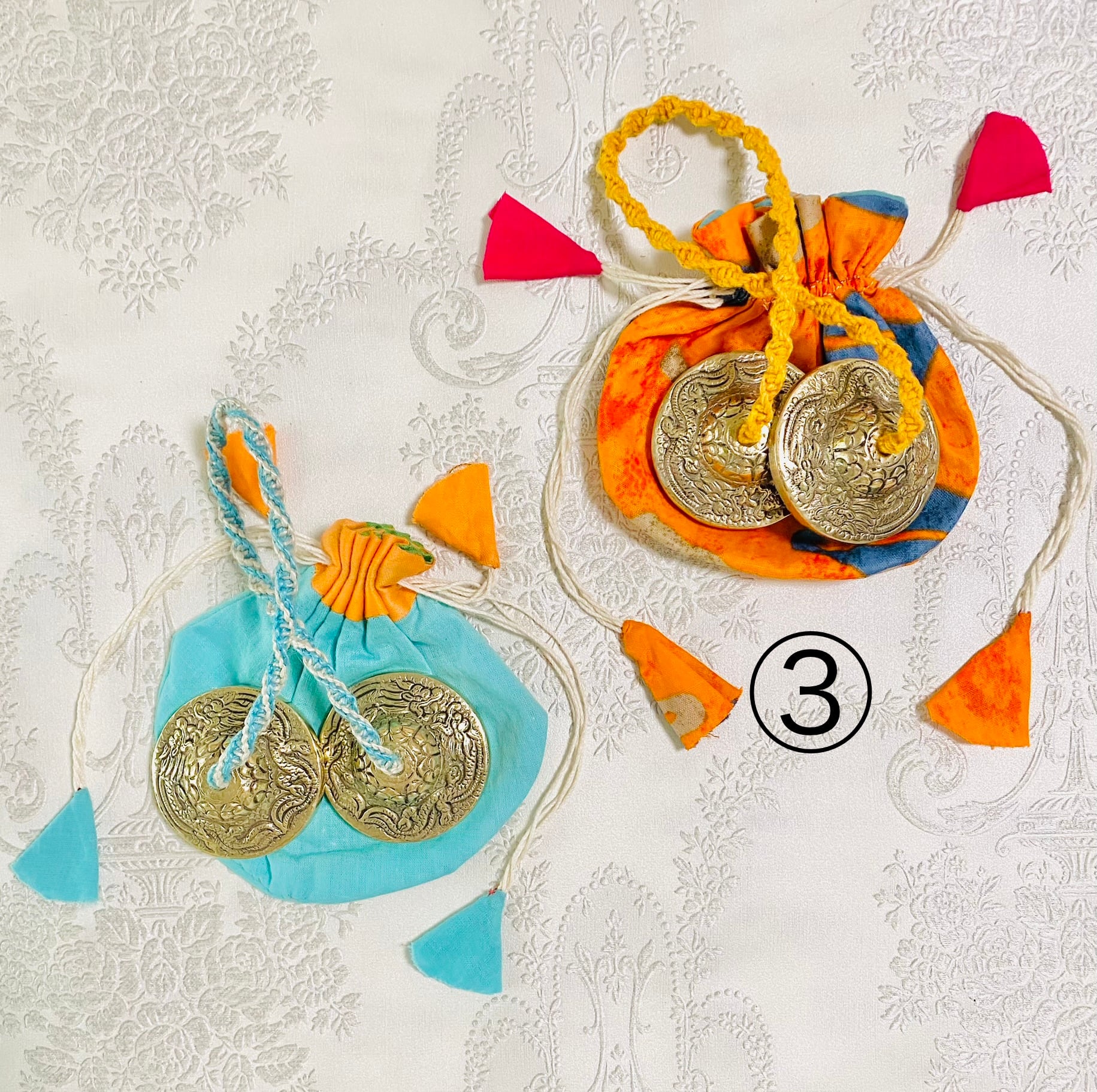 タイリポーチ、ティンシャ、オレンジ色コットン取手